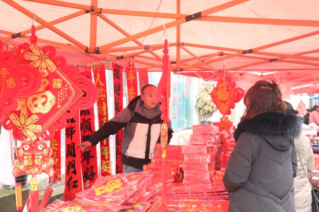 作为当地延续百年的传统习俗,羊场镇每逢农历三、八赶场,而腊月的年集更是承载着乡亲们对新年的期盼,成为兼具物资交易与情感联结的民俗盛会。笔者在现场看到,500余个摊位沿街巷整齐排布,功能分区清晰明了,生鲜肉类、特色农产品、日用百货、春联灯笼等1000余种商品琳琅满目,全方位满足群众一站式办年货需求。